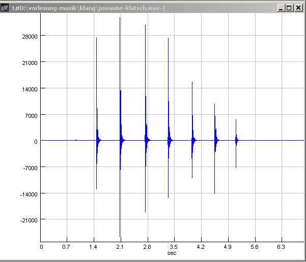 zum vorherigen Diagramm passend wurden die Maxima auf dem Bildschirm per Hand abgelesen. posaune-klatsch.wav (FB) |