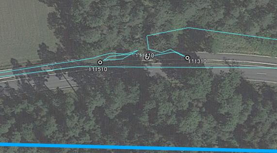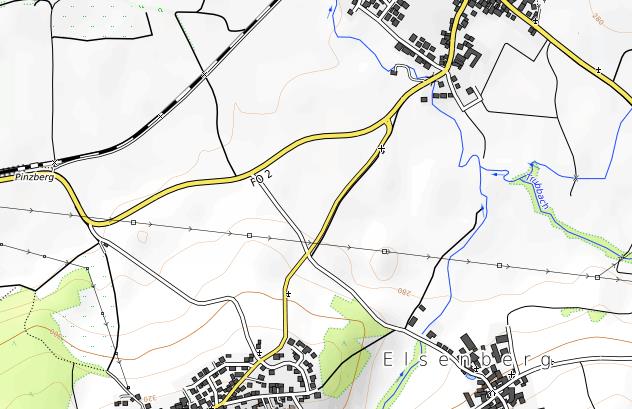 Strasse. A 110 kV high-voltage line from east to west crosses the road. https://opentopomap.org/#map=15/49.58267/11.23052 |