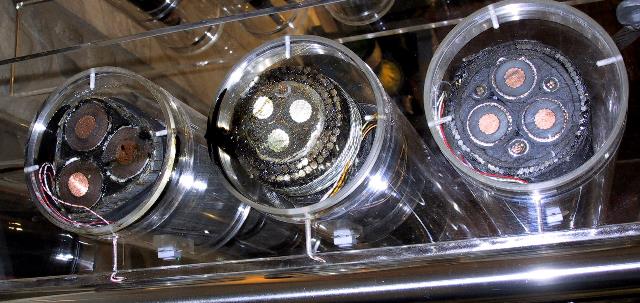 Strassenrandes liegt ein dreiphasiges Gummikabel zu