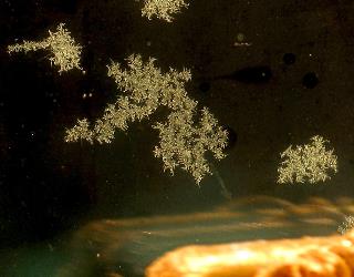 Mauer. Offensichtlich wachsen sie jeweils von einem Keimpunkt radial