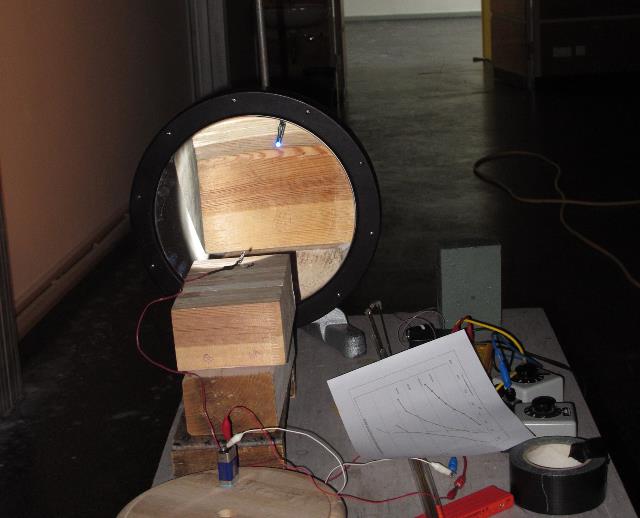 | Abb. 05-01-11: LED und Abschirmung, gewachsenes Holz, maximale Reichweite 2,5 m bzw. 2,4 m (Durchstrahlung in Wachstumsrichtung). Aluminiumblech, Reichweite 7,5 m |