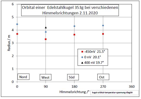 | Abb. 02-32: 3.11.2020 Das innere Orbital entsteht erst dann, wenn Spannung anliegt. Es wächst mit dem Betrag der Spannung an. Die Maße zählen ab der Oberfläche der Kugel. (FB) |