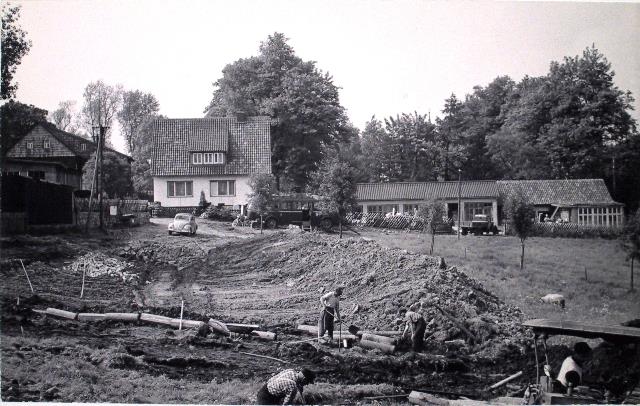 ehemaligen Teichgelände (rechts) wächst ein Wald. Das Haus in