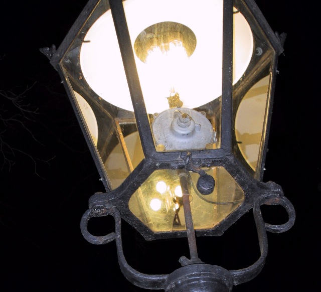 | Abb. 02-12: Gaslaterne im BerlinerTiergarten mit vier Glühstrümpfen. Im Spiegelbild unten sind sie gut zu sehen (FB) |