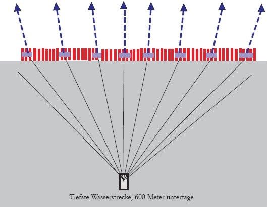 und untertage. Die Wasserstrecke liegt 600 Meter tief, das