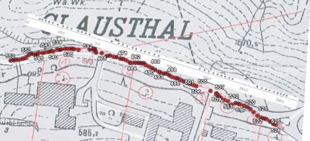 interaktives Luftbild mit Google Earth interactive areal photograph mensa-beugungsbild.kmz Abb. 04: Wiederholung der Datenaufnahme mit GPS im Herbst am 14.10.2008. Ungenauigkeit der Koordinaten (absolut) betrug laut Display ca. 5 Meter, für die Punkte relativ zueinander war sie jedoch geringer. Der Verlauf der Leibnizstraße mit den gespürten Positionen (rot). Das Gebäude der neuen Mensa ist am roten Dach zu erkennen (Bildmitte). Die Beobachtungsbedingungen waren sehr gut: diesiges Wetter (leichter Hochnebel), Temperatur etwa 12 Grad, windstill, (Vollmond) Die Strecke von 350 Metern wurde relativ rasch, beginnend bei der Einfahrt zum Physikinstitut (auch Nullmarke der anderen Daten), in zwei Teilen aufgenommen: Positive Richtung, 250 Meter, 7 Minuten Gehzeit Negative Richtung, 100 Meter, 3 Minuten Gehzeit (Geschwindigkeit 2 km/h) Korrekturen bei der Suche nach der exakten Position eines relativen Maximums durch Vor- und Zurückgehen fanden nicht statt. Repetition of the data recording with GPS in autumn 14.10.2008. Inaccuracy of the coordinates was 5 about meter (Information by GPS instrument) absolut, but relativ some more less. The Leibnizstrasse (road) and the perceived positions (red). The mensa building can be recognized by the red roof. Good conditions for observation: Hazy weather (easier low stratus), temperature about 12 degrees, windless, (full moon) The route of 350 meter could be recorded relatively rapidly, beginning with the entry Physikinstitut (also zero-mark of the other data), in two parts: Positive direction, 250 meter, 7 minutes runtime Negative direction, 100 meter, 3 minutes runtime (speed 2 km/h) Corrections with the search for the accurate position of a relative maximum by pre and back going did not take place. ( FB) |