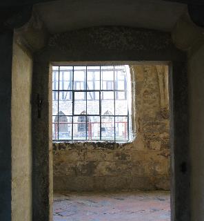 den Kreuzgang in Richtung zum Eingang, in Blickrichtung ist eine starke