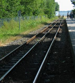 treffen. Kombinierte Gleise von Normal- und Schmalspur-Eisenbahn auf