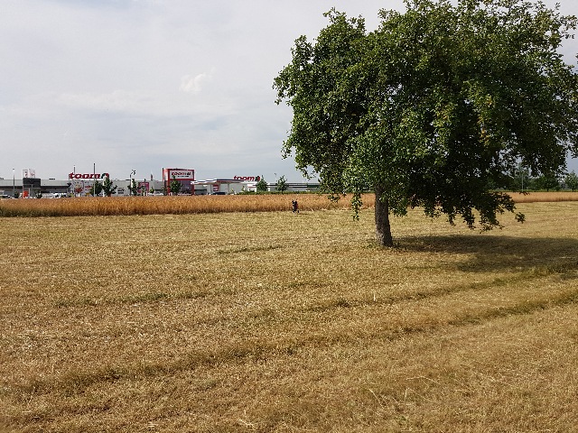 | Abb. 06-04: Beim Baum der Startpunkt B, in der Bildmitte steht das Fahrrad am Punkt A. (FB) |