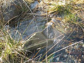 | Abb. 01: Kleiner Wasserfall mit viel Luftblasen (FB) | Abb. 02: Fallhöhe rund 0,3 Meter (FB) |