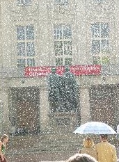 "erkennt" man auch die Fenster, die Eingänge, das rote Banner und