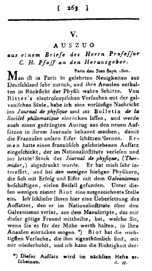 1. Literatur2. Ritters Arbeiten, ein wichtiger Baustein in der Geschichte der Elektrochemie3. Neue Versuche und Bemerkungen über den Galvanismus mit Kommentaren von C.H. Pfaff4. Noch einiges über Nordlichter und Feuerkugeln, und