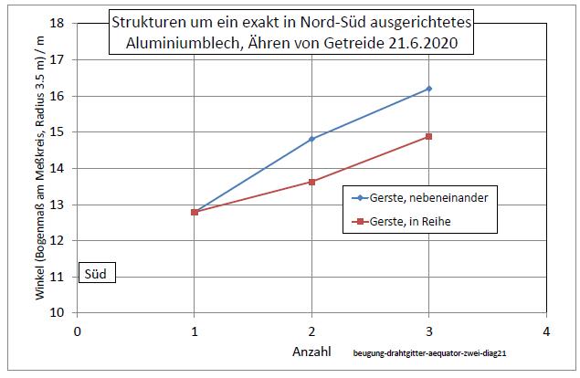Ganz rechts im Diagramm ist eine Kontrollmessung mit der Nr. 25, bei der das Aluminiumblech vom SEUMS um 180° gewendet wurde, so daß die andere Seite nach Ost zeigte. Diese Umstellung hatte auf das Ergebnis keinen merklichen Einfluß. (FB) |