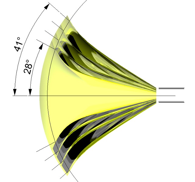 unterschiedichen Verdrehwinkeln. 0° 14° ;1° 27° ;2° 43°; 3° 67°; 4° 85°; 5° 109° (FB) |