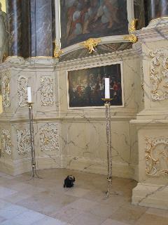 Der Altartisch ist auf Rollen und laut Aussage des Pastors in Richtung