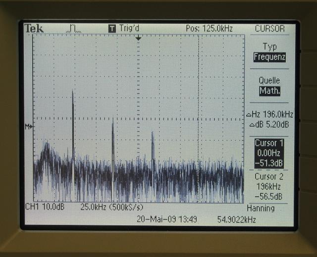 Oberschwingungen sind zu sehen bis etwa 120 kHz. frequenzananlyse