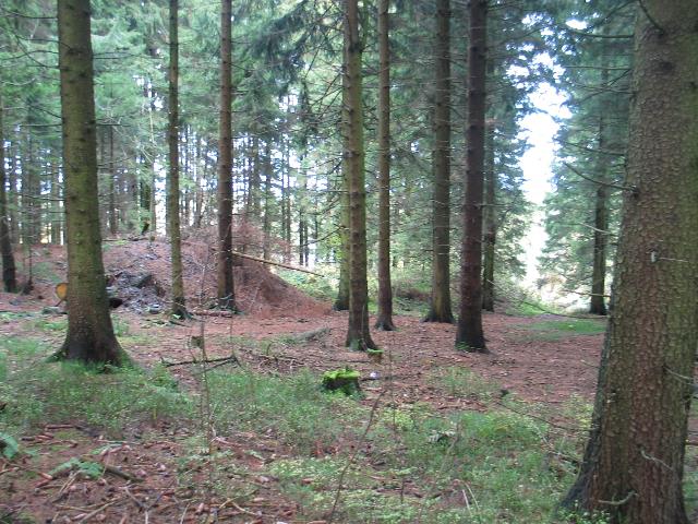Erdwälle liegen versteckt im Fichtenwald auf unterschiedlichem