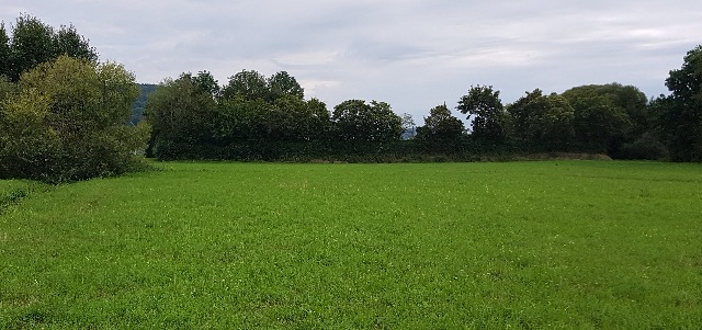 | Abb. 03-15: Blick nach Norden: Die "Warft" der Kläranlage Ebermannstadt, sie schützt vor Hochwasser im Tal der Wiesent In Blickrichtung verläuft die Spur der Rohrleitung. Sie endet etwa bei 30% des Bildes von links, eine weitere Spur ist etwa in der Bildmitte zu finden. View to the north: The "Warft" of the Ebermannstadt sewage treatment plant, it protects against flooding in the Wiesent valley. The trace of the pipeline is perceived in the direction of view. It ends at about 30% of the picture from the left, another trace is about in the middle of the picture.(FB) |
