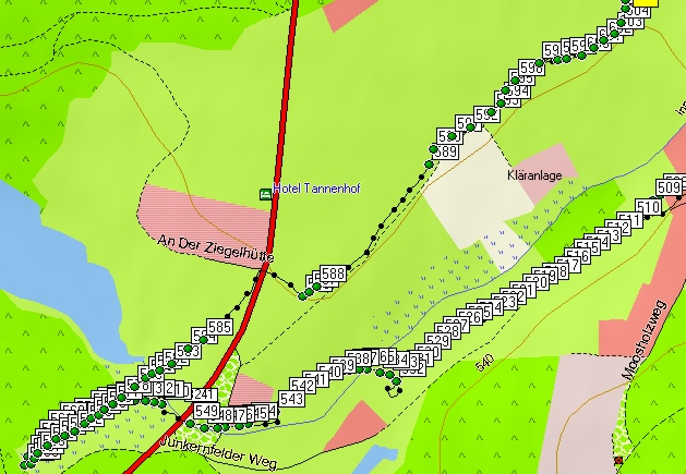 Punkte über der Spur am Unteren Pfauenteich (FB) |