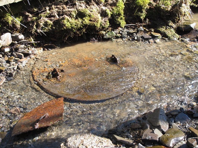 | Abb. 02: Mail an: Zentrale Polizeidirektion Hannover Dezernat 55 Niedersächsischer Kampfmittelbeseitigungsdienst (KBD) "Bei einem Spaziergang am 19.3.2011 bin ich die beiden unteren Kaskaden abgegangen und habe in der Bremke bei der Position N51 45 29.8 E10 16 44.3 Punkt 347 vom Hochwasser freigespült einen Kanalschacht gefunden, der mit einem Eisendeckel verschlossen war.(FB) |