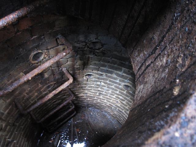 Rohrleitung weiter zu den Schächten. Hinter der Kamera befindet