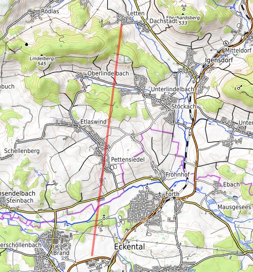 der "Strahl" in Bewegungsrichtung (Süd-Nord)