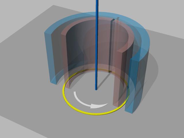 bei Stillstand, mit Rotation gelb: schrumpfen bei CCW und (+) oben) oder CW und (-) oben) blau: anwachsen bei CCW und (-) oben) oder CW und (+) oben) aus stromleiter-rotierend.htm#kapitel-01-02 |