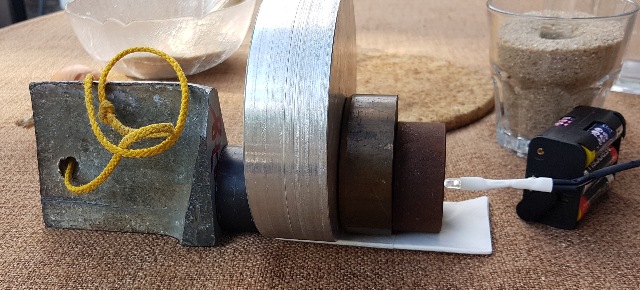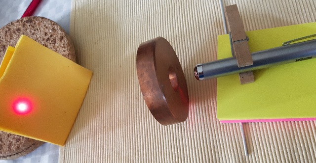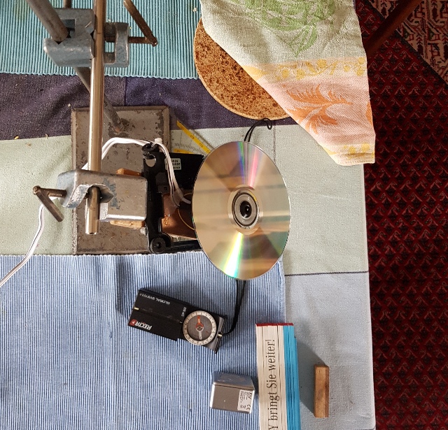 mit dem einen Kreisel auch den anderen antreiben. Wäre die Reibung sehr viel geringer, würde sich der zweite Kreisel auch über den Luftstrom des anderen antreiben lassen. (FB) |
