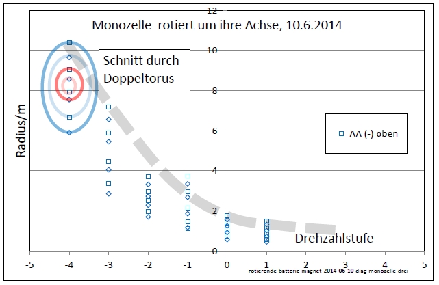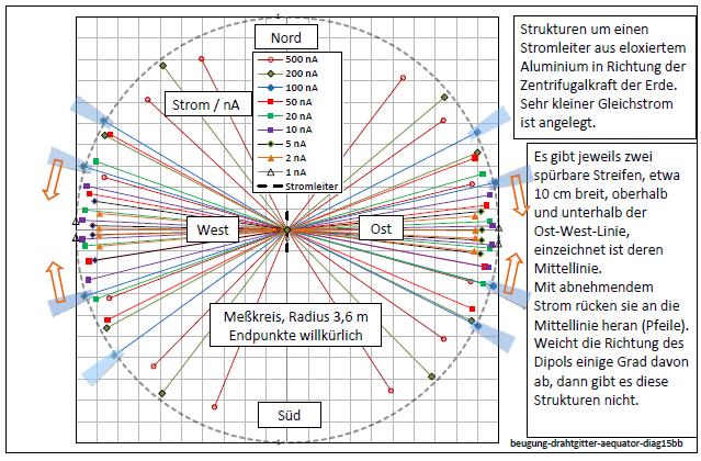 Je nachdem, ob bei CW-Rotation der "Nordwind" auf die A-Seite oder die B-Seite trifft, ist die lange Seite der Struktur auf der A- oder B-Seite zu finden. Bei CCW-Rotation ist es umgekehrt.Wenn die Scheibe während der Rotation in Richtung Osten durch einen leitfähigen Ring gegen den "Ostwind" "abgeschirmt wird, entsteht keine Struktur. Die Rotation ist dann offensichtlich wirkungslos.