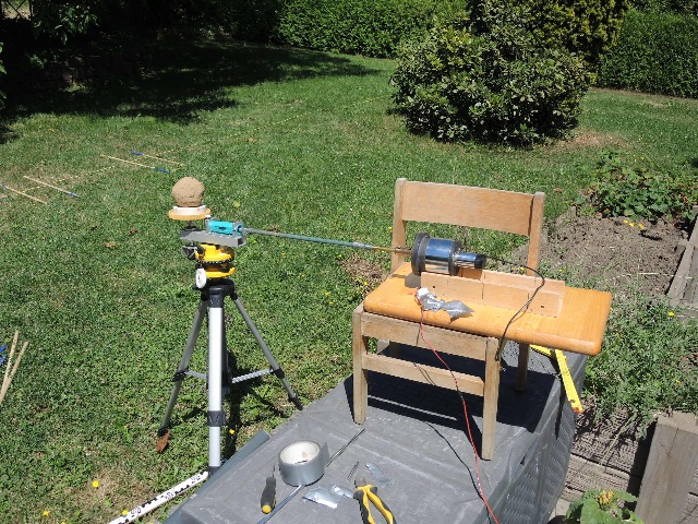 unterschiedlichen Drehzahlen (Motorspannungen) 4 Malteserflügel, Umlauf in 28 Sekunden. Die Struktur besteht aus Gruppen von Kissen, deren Anzahl und Größe von Drehzahl und Drehrichtung abhängt. Mit zunehmender Drehzahl wachsen die Kissen zunächst an, verkleinern sich aber wieder bei höheren Drehzahlen. --> lehmkugel.xls, Diagramm nicht aussagekräftig Wiederholung am 15.06.2015 Im Ruhezustand der Kugel: Orbital mit 6 m Radius Drehung der Kugel, es entstehen