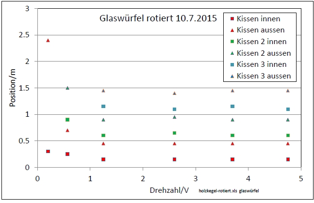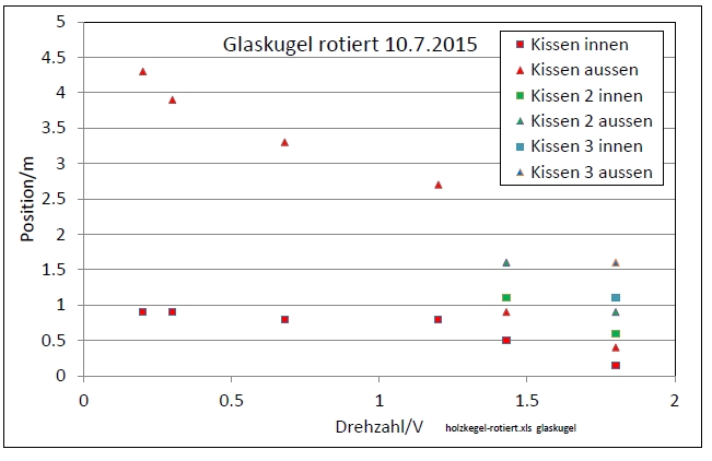 Es gibt bei 1,3 Umdrehungen/s CCW 3 Gruppen: 0.3 -1.1 ; 1.4 - 2.0 ; 2.3 -3.15 m CW 2 Gruppen: 0.6 -1.6 ; 1.9 -2.8 m weiterer Forschungsbedarf! (FB) |