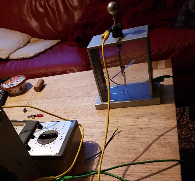 seiner langen Achse Ost-West, links ist Osten, es gibt eine Strömung von links, die am Elektrometerflügel nach oben abgelenkt wird. (FB) |