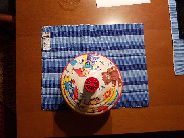 Hz. Die zugehörigen Nummern der Obertöne sind bei dieser Annahme sowohl ganz- und halbzahlig. Bei einer Schallgeschwindigkeit von 340 m/s hätte die Frequenz von 351 Hz eine Wellenlänge von rund 1 m. Dies ist um einiges größer als die Innenmaße des Topfes. Regt man den Topf entsprechend mit einem Rechteck von 350 Hz, dann erscheint kein Oberton! Allerdings in der Nähe bei etwa 338 Hz gibt es diese bevorzugten Frequenzen: 2377 Hz, 3040 Hz, 3720 Hz Klopft man mit einem Finger weich auf den Deckel, kommen Frequenzen aus der obigen Tabelle 1903 Hz, 2243 Hz, 2675 Hz, 3538 Hz und 4231 Hz (FB) |
