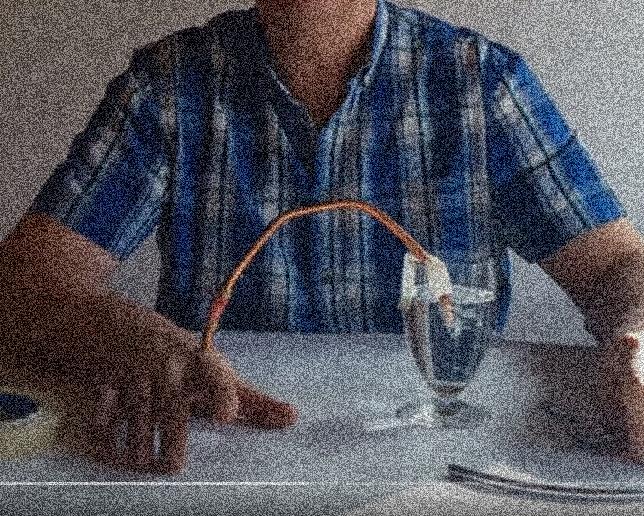 in der Quantenphysik). Dort, wo das Seil sich lange am gleichen Ort befindet, ist die Belichtung stärker, bei schneller Bewegung ist die Belichtung schwächer. Somit läßt sich aus der Belichtung die Aufenthaltsdauer bestimmen. (FB) |