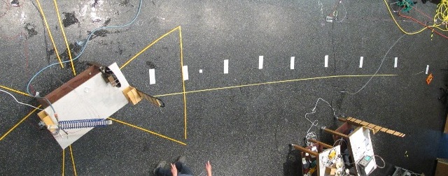 große Strömung, die mit Bändern ausgelegte Spuren,