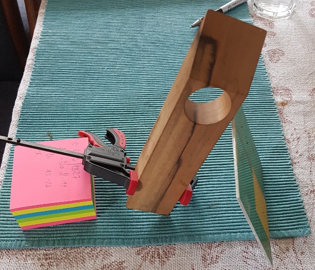 oberhalb der Unterlage, das Reagenzglas reicht bis
