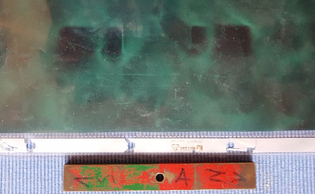 spürbare Kanten (hellgrün) bei 9 cm und 24 cm Bei Kupfer (orange) etwas kürzer als bei Zink. (FB) |