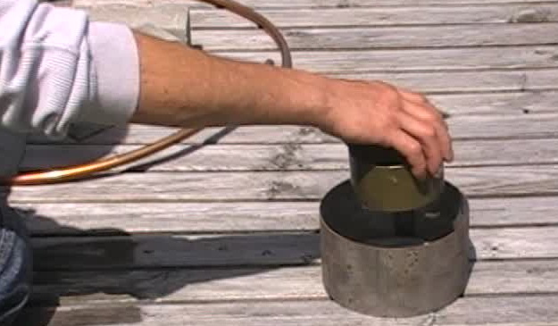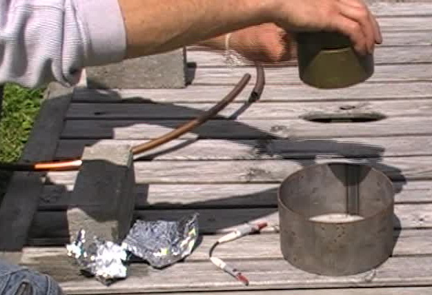 MOV028.mpg Zeit 0:50 Eisenrohr und Messingrohr ineinander, für eine elektrische Verbindung sorgt Aluminiumpapier. FB: ich habe sie jetzt miteinander verbunden, nicht mit den Krokodilklemmen 00:25 sondern mit der Alufolie. WA: galvanische Verbindung? FB: ja (FB) |